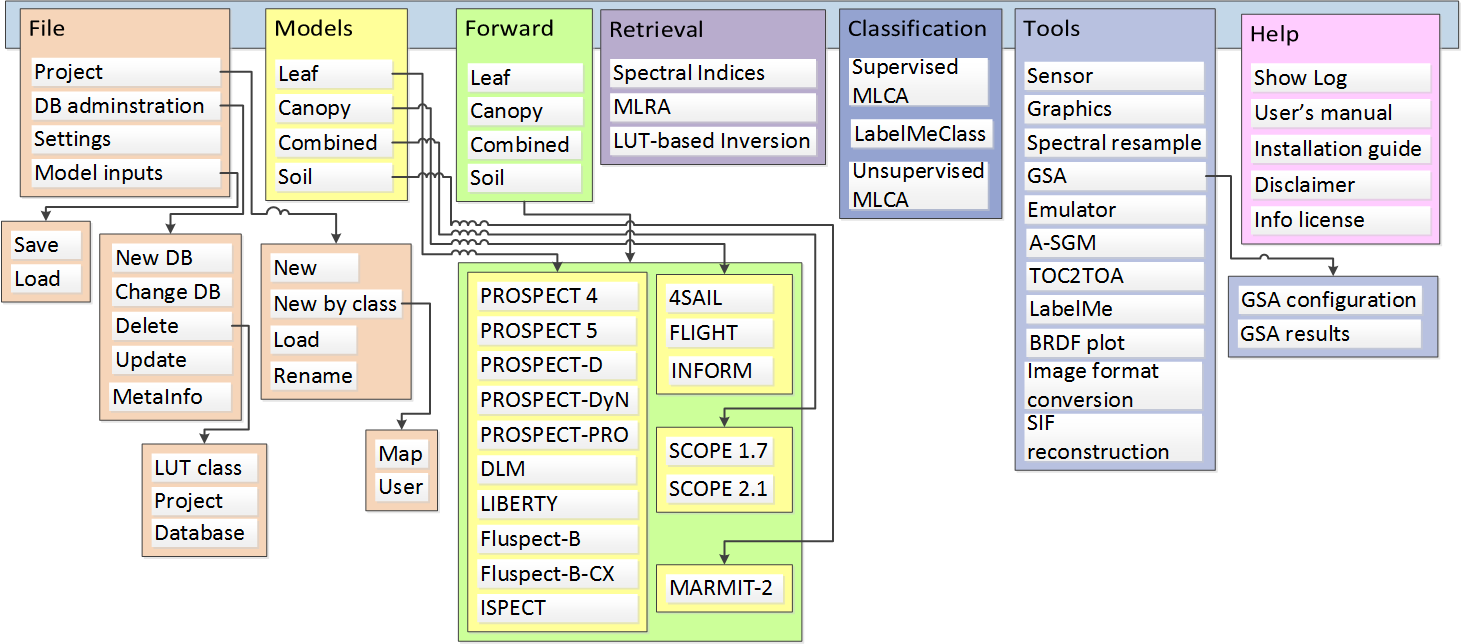 - The three Retrieval toolboxes have been updated (SI: v. 1.22, MLRA: v. 1.21 and LUT-inversion: v. 1.11). Some small utilities have been added and bugs were corrected. New machine learning algorithms have been added in the MLRA toolbox. An improved spectral noise model has been added.